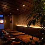 店内に一歩足を踏み入れると、まるでダイニングバーやギャラリーのような洗練された空間が広がります。木の温もりを活かした天井や、やわらかな間接照明、そして和の文様があしらわれた壁面が、落ち着きのある雰囲気を演出。客席は、ひとりで静かに食事を楽しむカウンター席のほか、大切な人と語らうテーブル席があり、全27席。どちらも心地よく過ごせるようなデザインです。また、MENSHOでは自家製麺にこだわっていて、店内には石臼と製麺機も設置。小麦そのものをひくところからはじまるラーメンづくりを実現しています。店内でひいた小麦による自家製麺の提供も行っていくとのことです。