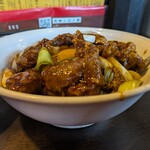 しっとり系チャーハンの上に、ケンタッキー級の巨大ザクザク唐揚げがドン。創業60年近い町中華の名物「鶏の唐揚げチャーハン」は、ブラックペッパー香る濃いめの味付けと具だくさんチャーハンのタッグが最強。どっちが主役か迷うけど、食べ終わるころには満腹でどっちでもよくなる。