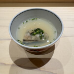 じつにユニークな握りを終えたら、〆のふわふわ玉子を頬張りたい。甘海老の頭と皮で丁寧に出汁を取り、すり身を使った、香ばしい海老の香りが堪らない。コースは石川「ヤマト醤油味噌」の2年熟成味噌を使用した味噌汁でフィニッシュ。