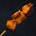 その後、ささみとホタテ貝を重ねてキャビアをのせた一皿が出て、いよいよ串の出番となる。皮切りは自慢の白レバー。フォアグラを思わせる濃厚さながらくどさは皆無。すっきりとした後口は、特選髙坂鶏ならではだろう。谷口さん曰く「最初だけ強火で周りを焼き固め、後は弱火で何度もタレに潜らせながら焼いています」とのことで、火はきちんと通っていながらも、レア感を残した焼き加減が素晴らしい。