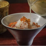 甘鯛に箸を入れるとサクッと音がしていい香りが漂います。寿司店だからこその豊富な魚種の端材と香味野菜で作るブイヤーベースは味わい深さが断然違います。和食の定番料理である「甘鯛の松笠焼き」とフランス料理の定番料理であるブイヤーベースがこんなにも合うなんて!