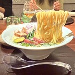濃度のあるスープは動物系のベースがしっかりしていながら白味噌の香りと旨みも生きています。
