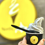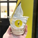 「虎ノ門ヒルズ」にある「DOLCE TACUBO Caffe」。恵比寿にある一つ星イタリアン「TACUBO」がプロデュースするカフェです。テイクアウトのみの「ソフトクリーム」(ミルク・コーヒー・ミックス)は、イタリアのソフトクリームサーバー“カルピジャーニ”で作られる、ふわふわでなめらかな食感とキレのある甘さを楽しめます。ミルクは濃厚ながらも後味スッキリ。コーヒーは「TERRA COFFEE ROASTERS」の豆を使用して、苦みやコク、うまみがしっかりと感じられる味わいです。