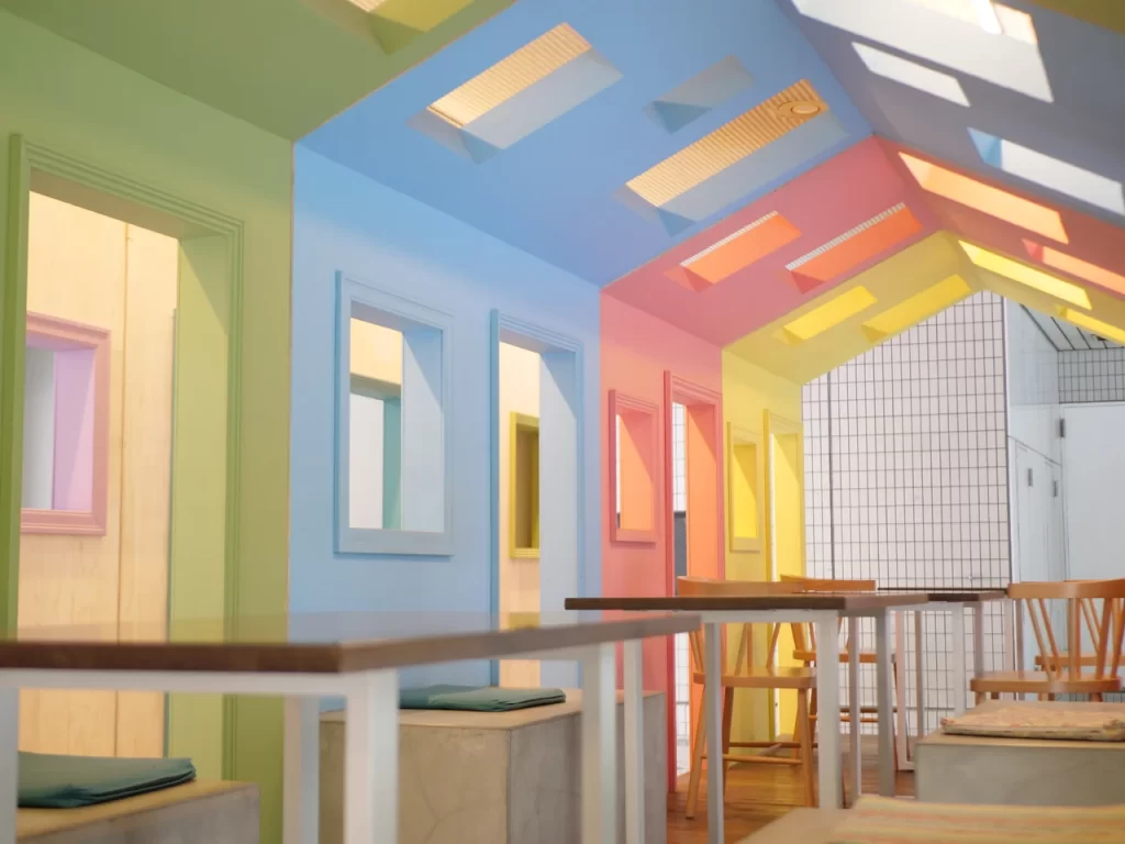 これまで「旬゛喫茶パンエス」として親しまれてきた店舗を全面リニューアル。カラフルなジェラートの世界観に合わせ、内装は原宿らしいポップで遊び心あふれるデザインに一新されました。リボンをモチーフにしたロゴにちなんで、店内のあちこちにかわいいリボンの装飾を散りばめ、どこを切り取っても写真映えする空間に。木の温もりを感じるテーブルを配置した全28席の客席は、テラスも含めて心地よいひとときを過ごせる場所になっています。
