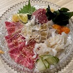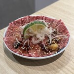 訪問日は「とうがらし」柚子胡椒ポン酢・おろしポン酢、「生ハート」生姜醤油、「アブシン」ごま塩油、「塩タン」昆布塩、「ヒウチ」辛子醤油、「ツラミ」おろしポン酢七味、「マルシン」卵黄とろろあおさ、など。