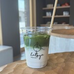 『抹茶ラテは目の前で点ててくれて、作っているところも見られます。甘さも選べました!とりあえず無糖で後から甘みを足すことも可能です。2層になっているので、お好みで混ぜます。濃厚で程よい苦味もあり、香り高くミルクとのバランスが良すぎる。