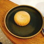さらに渋谷限定メニューとして、新商品の「八十八最中」400円も登場。自家製の抹茶餡を挟んだ最中は甘さを抑えた味わいが、ドリンクのお供にぴったり! お皿に添えられた石垣の塩と一緒に食べれば、抹茶のうまみや香りが引き立ちます。