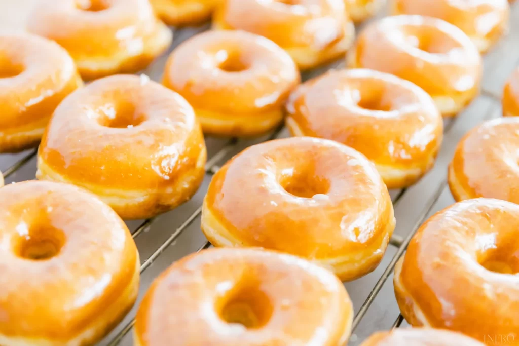 人気No.1の「グレイズドレイズド」360円は、ふんわりとした軽い食感の伝統的なイーストドーナツに、薄くてパリッとしたシュガーグレイズをコーティング。シンプルで飽きのこないおいしさが長年愛され続けている理由です。