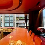 また、空間デザインも注目ポイントの一つ。「Florilege」も手掛けた「Esquisse」の甲斐晋介氏が担当し、空間全体を特徴づけるのは深みのあるバーガンディです。天井や壁、カウンター、さらにはメニューブックに至るまで統一されています。アマゾンに生息するカエルを思わせる色調と、「井の中の蛙」に倣った井戸を思わせるカウンターデザインによって、どこか毒々しくも魅惑的な世界観を表現しています。客席はカウンター15席とテーブル8席の全23席で、どこに座っても異なる表情の非日常を味わえる唯一無二の雰囲気です。