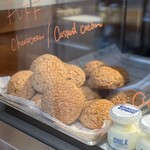 看板商品は、クッキーシューとパイシューを組み合わせた「ザクシュー」600円。表面には皮つきアーモンドを散りばめ、香ばしさとザクザク食感を実現。注文ごとにクリームを詰めるため、いつでもできたての食感を楽しめます。また、しっとり食感の「ドライビングクリーム」500円は、自家製クッキーで包んだシューに北海道産の乳製品を贅沢に使用したリッチな一品。2種類のシュークリームが、それぞれ異なる魅力で訪れる人を魅了します。