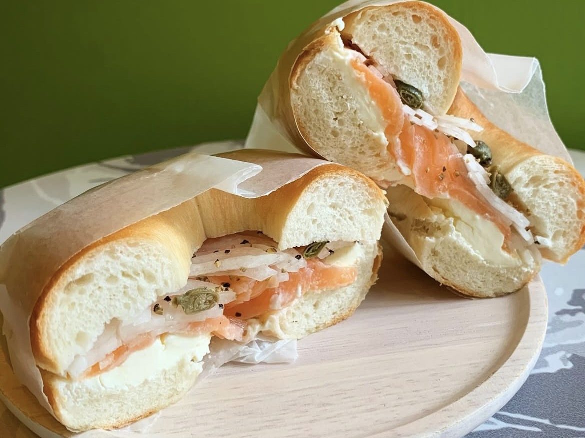 営業時間は朝8時から。平日の朝限定(月・火は定休日)で、プレーンベーグルにクリームチーズを挟んだ「モーニングベーグルサンド」を提供。ランチタイムには「スモークサーモンベーグルサンド」900円や「トマトバジルチーズベーグルサンド」790円など、食事系ベーグルも充実しています。ベーグルは売り切れ次第終了で、その後15時まではドリンクのみの販売となります。お気に入りを確実に味わいたいなら、早めの来店がおすすめです。