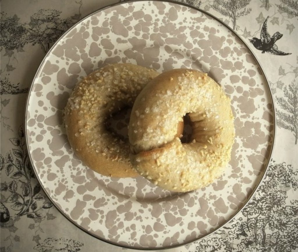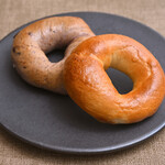 →表面はベーグルらしくツルッツル!とても小ぶりで一つの重さは80gくらい。厚みも薄め。