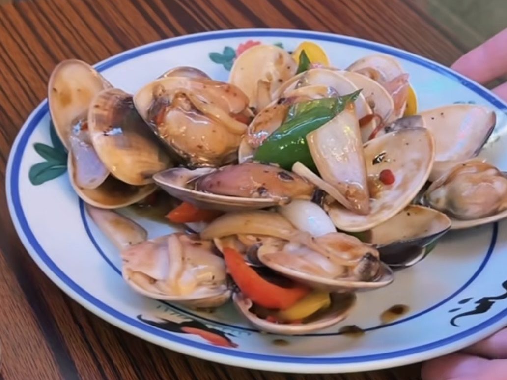 おすすめメニューのひとつ「豉椒炒花蛤(アサリのトウチと唐辛子炒め)」3,800円は、豆鼓(トウチ)の深い旨味と唐辛子の辛さが、新鮮なアサリの甘みを引き立てる一品。鉄鍋の強火で仕上げることで“鑊気”が立ち上り、香ばしさと食欲を刺激します。