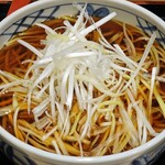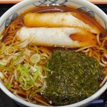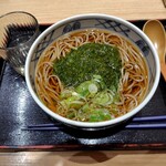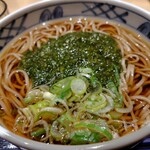 かけそばの上には、濃い緑色で粘り気のある“ぎばさ”がたっぷりとのせられている。