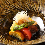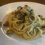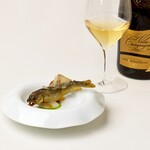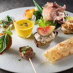 全面を窓に囲まれたカウンターメインのゆったりした店内で、料理は8,800円のコース。まず供される、有田「カマチ陶舗」の白い大きなプレートに盛られた8種の魅力的な前菜に驚きました。シェフの故郷である奈良のエッセンスや世田谷の農園の野菜などを印象深く取り入れつつ、しっかりとイタリア料理に昇華していて、これでボトル1本飲めるのではと思うほど。パスタが2種というのも麺好きにはうれしい限り。駅からはだいぶ離れた場所ですが、それが却って特別感やご褒美感を高めそうです。