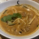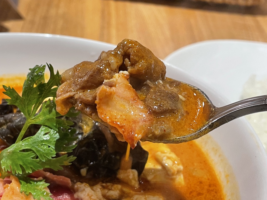 ココナッツベースのカレーはタイカレーとも近いのですが、オーセンティックなものとは違う独自の着地。辛さ普通なら誰にも食べやすい優しいテイスト。刺激が欲しい方は中辛以上が良いでしょう。