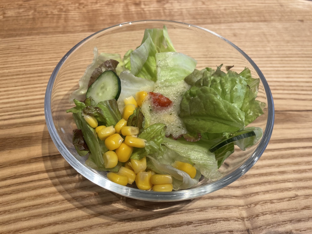 ランチタイムにはミニサラダが付くのもうれしいサービス。