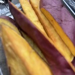 看板メニューの「やわらか芋けんぴ」は必食。一般的な芋けんぴとは似つかない、かなり太めのフライドポテトのようなビジュアルです。しっかりした食べ応えと甘じょっぱいおいしさで、食べ始めたらノンストップ!「芋けんぴは硬いし甘いから苦手」という人にぜひ食べていただきたい、芋けんぴの概念を変える食べ応えある逸品です。さつまいもが好きなワンコのお土産用に、犬用の芋けんぴや干し芋も扱っています。