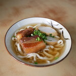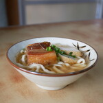 麺に混ぜるのはかん水ではなく、木灰(もっかい)を使うのが特徴的です。木の灰を水に溶かした上澄みを使うという沖縄そばの昔ながらの作り方。太めの力強い麺が楽しめます。