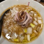 メニューの中でもひときわ目を引く「乱舞」は、中心にバラの形に燻製したチャーシューが盛り付けてあり、それをほどきながら散らされた葱と一緒に食べるのがおいしいです。