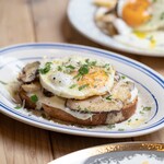 夜はハーブや柑橘が爽やかな「カルパッチョ」1,680円や、ミニパンケーキと優しい酸味とコクのクレームフレッシュの相性が抜群の「キャビアブリニ」3,280円、ボリューム満点の「ステーキ&エッグ」3,680円など、ワインに合うメニューも充実しています。