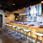 店内は、カウンターを中心とした12席のスタイリッシュな空間。スタッフとの距離が近く、焼鳥が焼き上がるライブ感を五感で味わえる臨場感に満ちています。