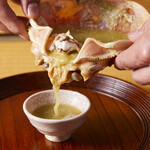 焼き上げた蟹の殻を日本酒で煮出した「カニ酒」を楽しめるのも「かにじぇんぬ」の魅力。麻布店は、掘りごたつとテーブル席の2タイプの個室のみで構成された、エクスクルーシブな空間です。化粧室も各部屋に備えられており、接待や記念日など、特別な時間を過ごすのにふさわしいプライベート感が徹底されています。
