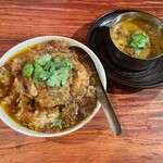 〆にはこちらも一人客のみ注文できる「茶碗カレーライス」650円に「花椒オイルのコリアンダーポークカレー」500円を合わせて。