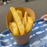 それだけにメニューは「スティックハンバーグ」「オオミヤメンチ」「浅草フリット」「濃厚ソフトクリーム」と食べ歩き用に特化。インバウンドの観光客であふれかえる浅草のニーズにマッチしていて、親子連れの外国人客などで大盛況でした。牛8:豚2の本店名物のハンバーグを、つくねのように刺したスティックハンバーグは驚くほどジューシーで、一気に頬張ってしまうほど。なにより、75歳にして現役のレジェンド・大宮勝雄シェフに会えるのは魅力です。