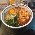 かつてよく利用した店頭でのおにぎりの販売はありませんでしたが、レジからマイクで注文を厨房へ読み上げる名物のオペレーションは継承されています。6種の具がのった「オールスター」や南蛮漬けにしたさばと北海道産じゃがいもを使った「さばコロッケそば」、“賞味期限3分”の「究極おかか飯」などの渋谷限定のそそられるメニューも。早速さばコロッケそばをオーダーして、かつてマッキー牧元さんに教えていただいた方法を実践しました。コロッケを丼の底に沈め、熟成させるのです。濃いめの出汁を思い切り吸ってふやけたコロッケは、素晴らしい満足感でした。