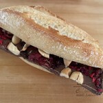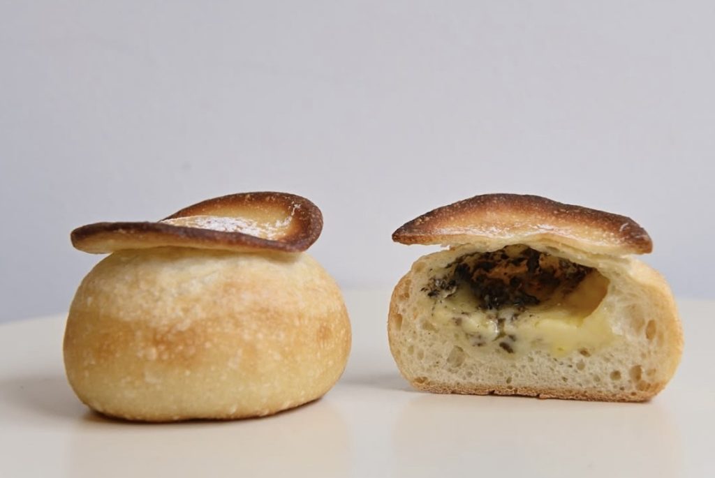 さらに、バゲット生地で焼き上げた香り高い「黒トリュフのシャンピニオン」370円や、種類豊富な「フォカッチャ」などワインにぴったりのおつまみパンも充実。上品な食感のヴィエノワ生地に自家製ミルククリームを絞った「苺クリーム」370円や、素材の味を存分に堪能できる贅沢な「チョコレートドーナツ」340円など、甘いおやつパンも揃い、選ぶ時間さえ楽しくなります。