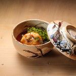 松茸コース。大量の干し松茸で出汁をとるという、他にはない唯一無二の松茸土瓶蒸しを生み出した。旨みが強烈。