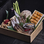 『前菜から一品一品が丁寧で、見た目にも美しく、最初からわくわくするコースでした。特に印象に残ったのは、ぼたん海老の酒盗和えとフルーツトマト。ぼたん海老は蓋を開けた瞬間に煙の演出があり、とても楽しめました。