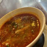 看板メニューのサイウアは、コロナ禍のとき開発したメニュー。豚の腕肉のミンチ、レモングラスやコブミカンの葉などのハーブ、唐辛子、タイカレーのペースト、ネギなどの香味野菜を使用。「タイでは生の唐辛子を使っていて、本当に辛い。なので、生の唐辛子は使わず、辛さは控えめ。ハーブの香りを楽しんでほしいです」