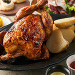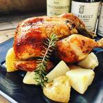日本橋にある丸焼きチキンとワインが人気の一軒屋バル。専用のロティサリーオーブンで約40分じっくりと焼き上げるチキンは香ばしく、ワインやビールとの相性が抜群。チキンのサイズは1羽の他にハーフサイズ(1,980円)も用意。人気のチキンはロティサリー以外に「クォーターチキンプレート」1,540円、「チキンオーバーライス」1,320円などのメニューとしても味わえます。