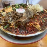 最後に麻婆豆腐の進化系をご紹介。醤油ベースのスープに、自家製の濃厚麻婆餡を豪快にかけた「旨辛痺麺」。花椒の痺れと唐辛子の辛さが力強く、さらに背脂・ニンニク・ニラの香りが重なって危険なほど中毒性のあるうまさに仕上がっている。中太の自家製麺は強いコシで麻婆餡とよく絡み、食べ応えは抜群。ご飯を添えれば麻婆丼化も可能な、破壊力ある一杯。