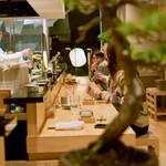内装デザインを手がけたのは「BLUE BOTTLE COFFEE」などを手がける工務店「TANK」。ベージュやグレーを基調とした落ち着いた色調に、木・和紙・漆の質感が溶け込み、焼鳥店とは思えない静けさと気品を感じさせます。店内中央には炭台を配置し、自然と視線が集まるライブ感を演出。カウンター、テーブル、暖簾で仕切られた半個室まで揃い、一人飲みからデート、接待まで幅広いシーンに寄り添う全49席です。