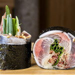 いただいたときはイワシでしたが、一緒に巻かれた生姜の酸味が素敵! 巻き物なので口の中での変化を楽しめます。