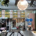 テイクアウト専門の店内は、“オトナかわいい”をコンセプトに、フェミニンなライトやクリーンなタイル、爽やかなグリーンの装飾などを凝らして、明るく清潔感のある空間に仕上げています。