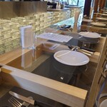 出店場所は、京都御所のすぐ近く。コンセプトである「京都でしかできないお店づくり」を実現するため、築100年近い町家を選んだそうです。かつての京都市電の石畳を活用した店先の路地や、庭のある空間が特徴的で、古きよき風情を最大限に残しながら、ステンレスやクリスタルガラスといった近代素材を融合させています。 店内は、「見る・見られる」の関係性をテーマに、庭とキッチンを一体の空間として設計。コンセプトカラーには、銅や真鍮が酸化した色である日本の伝統色「緑青(ろくしょう)」を採用し、街の雰囲気に溶け込むような落ち着いた空間を演出しています。