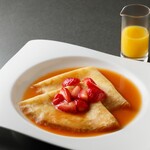 見惚れていると一瞬で終わってしまう華やかなパフォーマンスだが、背後には、さまざまな工夫や熟練の技があることを知ると興味深い。クレープ・シュゼットには「プレーン」「アイスクリーム添え」のほかに、季節により「清美オレンジ(春)」「白桃(夏)」「洋梨(秋)」「無花果(秋)」「いちご(冬)」などのバリエーションがある。