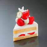 この季節になると、いちごの旬がやってくることから、ショートケーキも最盛期を迎える。こちらのショートケーキは、一般的なものと比べてワンカットが比較的大きめ。上部にはいちごが3粒ものっている。