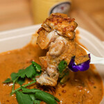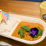 一緒に盛り付けられたカレーは、豆と野菜に鶏だしを加えたリッチなおいしさ。