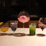 「毎月6日〜12日限定でじゃーとコース」9,900円(12時/19時の2部制)は、この店ならではの楽しみ方の一つ。季節の食材を使ったデザート5皿に加え、〆としてパスタなどの食事系の一皿も付く構成で、甘味と食事がなめらかにつながる独自のコース体験を味わえます。パクチーをアクセントにした意外性のあるデザートや、トリュフの芳香を生かした一皿など、既成概念にとらわれない表現も魅力で、「デザートの余韻」を主役にした構成が印象的です。