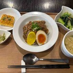 コクといえば「牛ホホのプーアール茶煮込み」も然り。牛頬肉の塊を醤油や塩など定番の調味料に、台湾の米酒や長ネギ、生姜、更には甘草や陳皮といった生薬も加え、プーアール茶で蒸し煮すること約1時間半。煮汁にプーアール茶の粉末を入れたソース、炒めた青菜を添えて提供している。