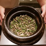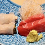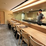 1万円からのコースもありますが、ほとんどのお客さんはお好みで、自分のペースで飲んでつまんでいました。まぐろは気鋭の仲卸・結乃花からですが、親方とは長い付き合いだとか。開店は午後3時。随分早いと思ったら、場所柄、豊洲帰りの職人、ご近所の年配客、ゴルフ帰りの人など需要が多いようです。ガラスケースに寿司種が並ぶ懐かしい光景、酒を進ませる肴、安定感のある握りにベテランの矜持がにじみます。席はカウンター7席と2階個室。“おまかせ”より、お好みでこそ真価が出る店です。