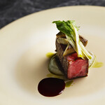 コースでは他にも、スペイン・アンダルシア地方の白い冷製スープ「アホ・ブランコ」をソースにアレンジした大間のマグロのタルタルや、シェフの父のレシピを受け継いだチミチュリソースで食す仔羊のローストなど、さまざまな文化を融合した料理が並びます。