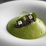 シグネチャーメニューの「アロス・カルドソ」は、シェフが幼少期に祖母の家で食べた雑炊のような米料理「カルドソ」に着想を得たもの。鉄鍋を使って秋田県産米をソフリットやキノコのだしとともに炊き、肉や魚介、野菜など旬の食材を合わせ、ライムのゼストで南米風のアクセントを加えています。「家族の温かみを感じてほしい」というシェフの思いが込められており、ファインダイニングながらおかわりもOKなのがうれしいところ。