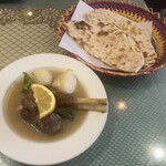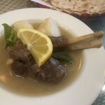 定番メニューから「ラムニハリ」1,750円をロティで。しっかりと煮込んだラムの骨付き脛肉はコラーゲンたっぷりで濃厚かつ重厚なおいしさ。