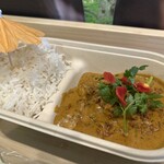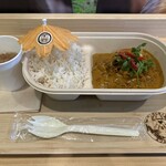 一緒に盛り付けられたカレーは、豆と野菜に鶏だしを加えたリッチなおいしさ。